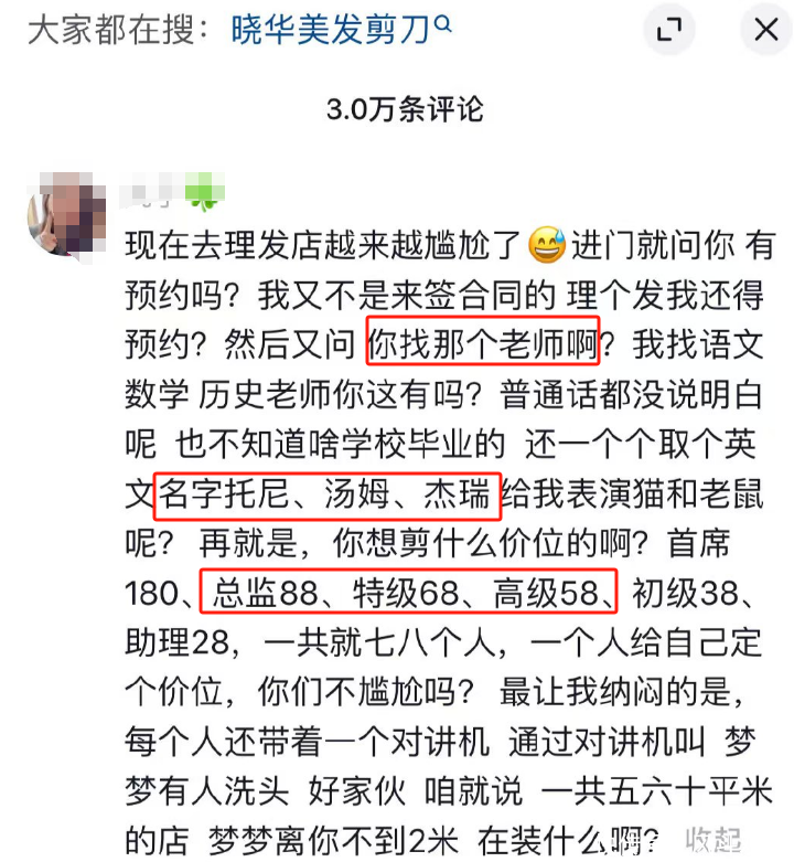 先是进门要预约,洗剪吹动不动上百块,整出饥饿营销一发难求的花样。