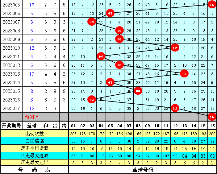 蓝球分析:在第018期历史同时开奖中,蓝球号码奇偶比为13:7,最近5年同时奇偶走势为:奇、偶、奇、偶、偶,本年同时瞻望再出偶数蓝球,推选蓝球16。