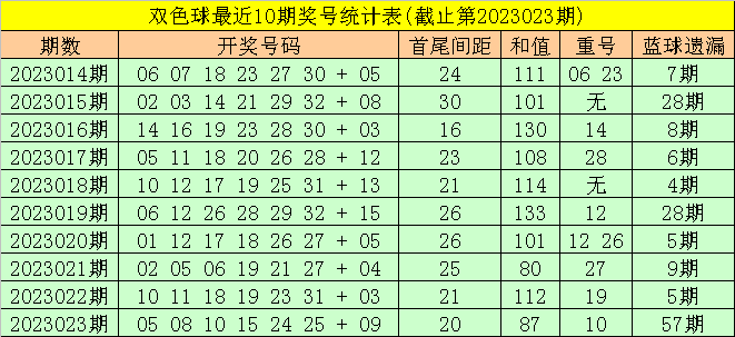 红球重号:上期奖号出现1个重号10,重号较热,重号近期总体较少,本期预测重号赓续走冷轮空。