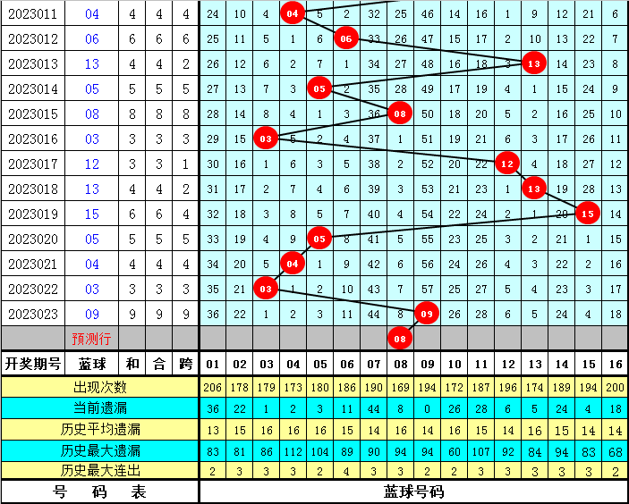 蓝球分析:上期开出蓝球09,为遗漏57期的冷码,最近10期热码蓝球出现7个,发达比拟活跃,本期详确热码蓝球再出,参考蓝球号码08。