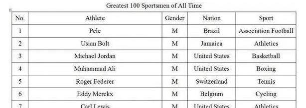 最近,海外一家媒体评比出了历史上,宇宙体坛最伟大的100东说念主,榜上的东说念主物都是咱们极度谨慎的名字。他们是各个畛域的风浪东说念主物,在他们的开通员生计完成了极高的树立,代表了一个时期。